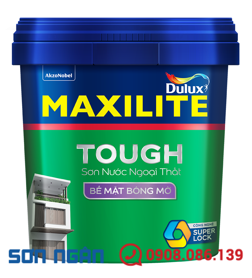 Maxilite Tough từ Dulux là dòng sơn nước ngoại thất chất lượng cao, sử dụng nhựa gốc Polymer kết hợp công nghệ SuperLock hiện đại. Nhờ đó, màng sơn bám dính chắc chắn vào tường, ngăn ngừa bong tróc hiệu quả và duy trì màu sắc bền đẹp với bề mặt láng mịn.